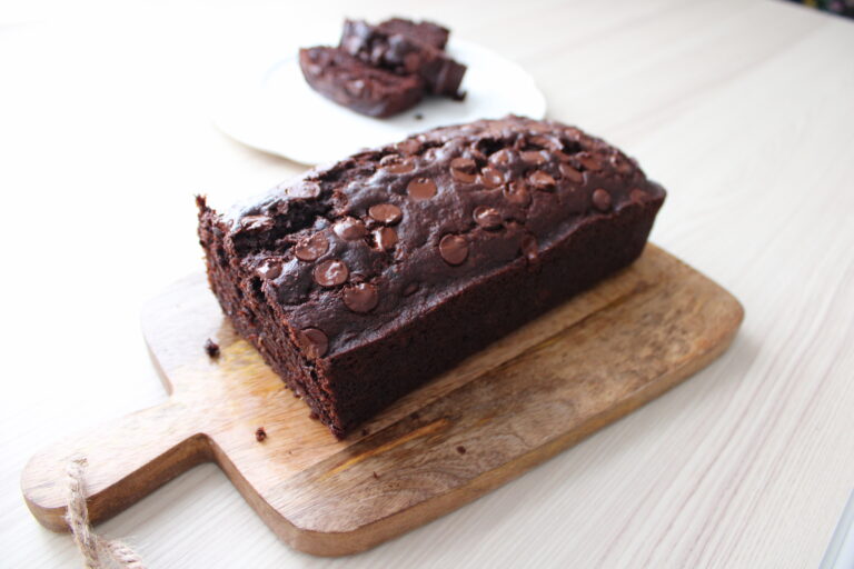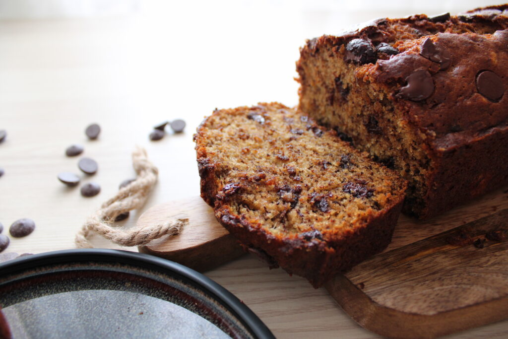 It has the true banana bread texture — moist, dense (but never heavy), and soft with a tender crumb. The cocoa adds depth without overpowering the natural sweetness of ripe bananas, while chocolate chips melt into little pockets of richness in every slice.