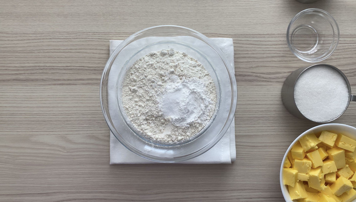 In a separate bowl, whisk together the flour, baking powder, and salt until the dry ingredients combine evenly. Set the bowl aside while preparing the batter.