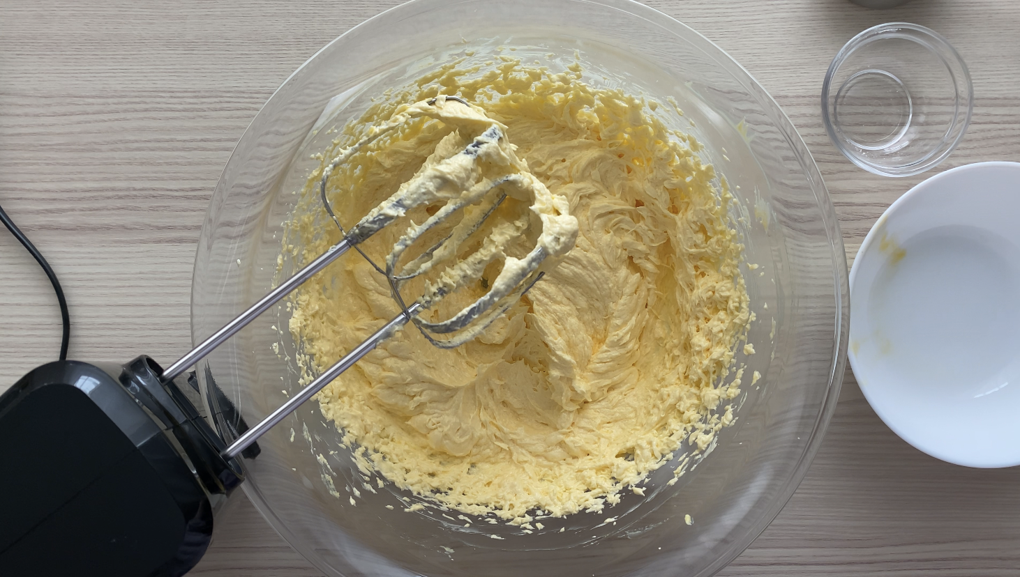 Beat the butter and sugar for 3–4 minutes until light and fluffy.